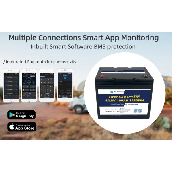 The Bluetooth Lithium Battery from BeLY offers an energy of 1280Wh and cycles more than 5000 times @25℃. This lifepo4 battery 12v with BMS and Bluetooth is perfect for various applications, including electric vehicles, solar energy storage systems, and other similar uses.